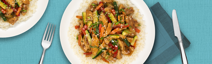 As vegetables are heating up, in another pan, cook Kevin's Teriyaki Chicken according to package directions.