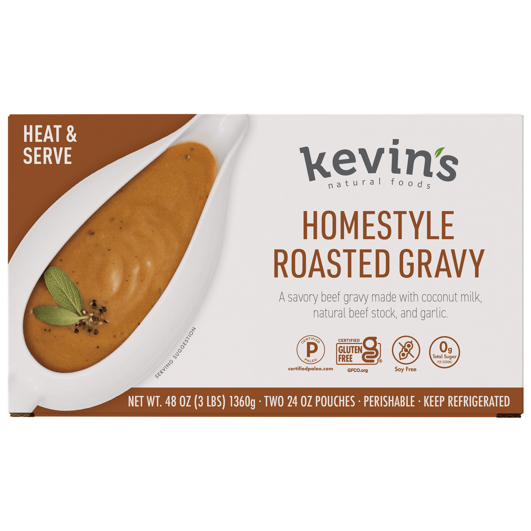 A savory beef gravy made with coconut milk, natural beef stock, and garlic.
