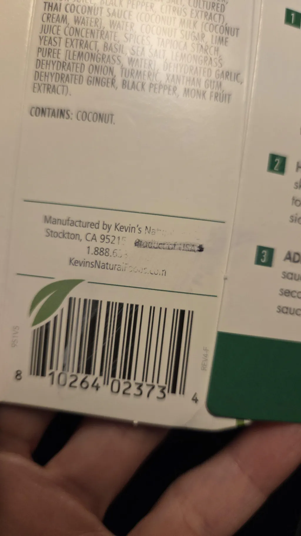 Chicken In Chicken Broth Cooked Out As A Result Of The Sous-Vide Process (Boneless Skinless Chicken Breast, Water, Vinegar, Yeast Extract, Sea Salt, Cultured Onion Juice, Black Pepper, Citrus Extract), Thai Coconut Sauce (Coconut Milk [Coconut Cream, Water], Water, Coconut Sugar, Lime Juice Concentrate, Spices, Tapioca Starch, Yeast Extract, Basil, Sea Salt, Lemongrass Puree [Lemongrass, Water], Dehydrated Garlic, Dehydrated Onion, Turmeric, Xanthan Gum, Dehydrated Ginger, Black Pepper, Monk Fruit Extract).